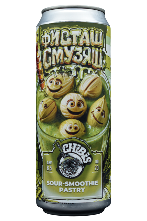 Плотный, непрозрачный и текстурный кислый эль консистенции смузи, сваренный с добавленим фисташки.