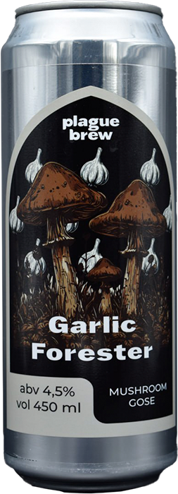 Коронная линейка грибных гозе от пивоварни Plague Brew, под кодовым названием Forester, кисло-солёный гозе с ярким ароматом грибов и специй. Данная версия приготовлена с добавлением чеснока.