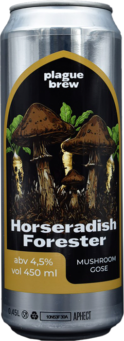 Коронная линейка грибных гозе от пивоварни Plague Brew, под кодовым названием Forester, кисло-солёный гозе с ярким ароматом грибов и специй. Данная версия приготовлена с добавлением хрена.